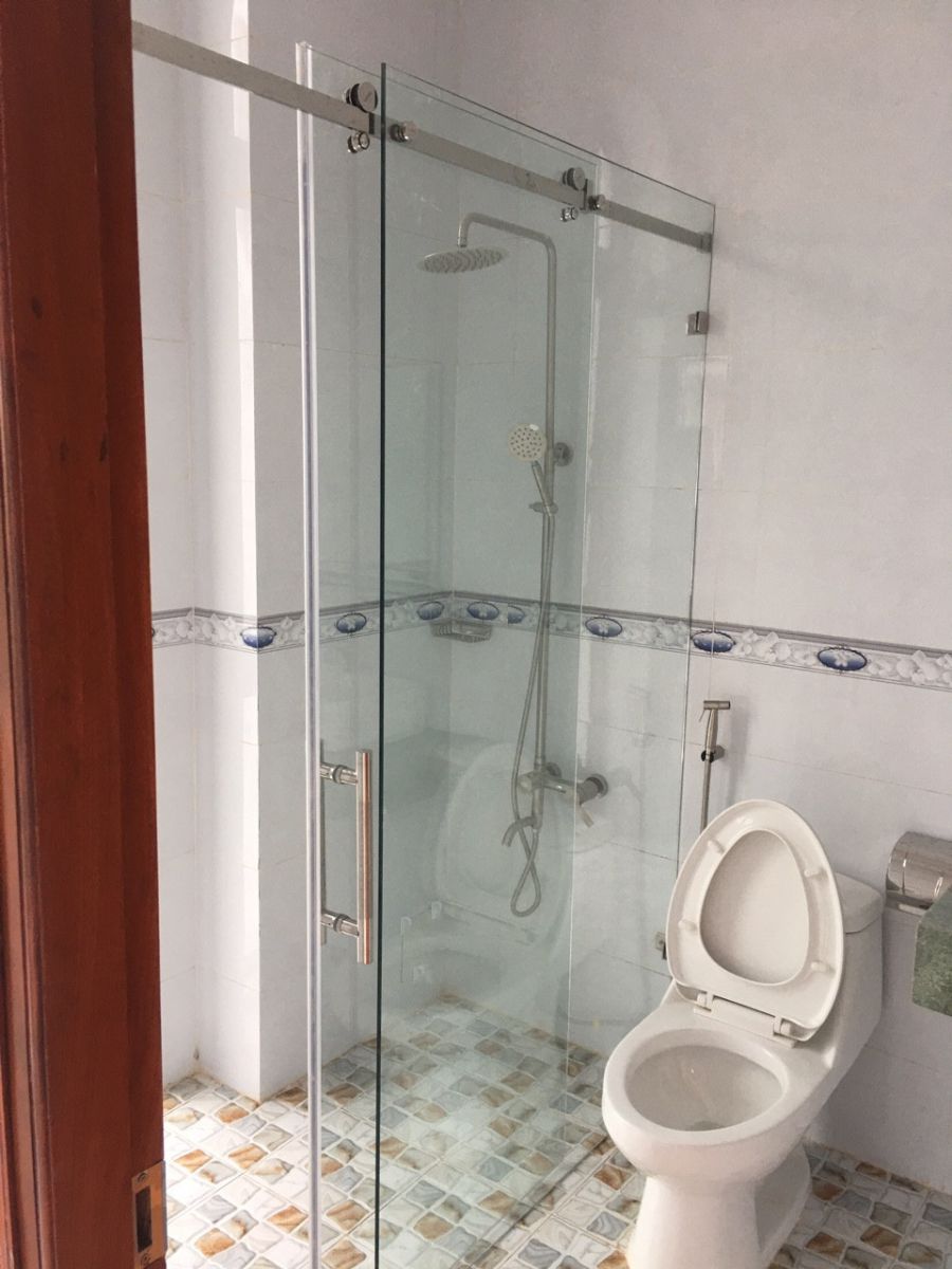 Kính cường lực: Kính cường lực 8mm, 10mm, 12mm thường dùng loại kính dày 10mm, phôi kính Việt Nhật tôi cường lực nhà máy Hải Long đảm bảo độ bền chắc và an toàn khi sử dụng.