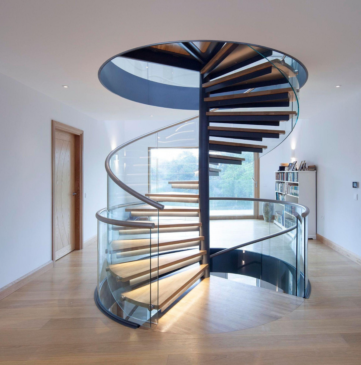 Cầu thang uốn cong là dạng cầu thang có thiết kế tương tự theo cầu thang chữ L, nhưng có nhiều đường nét uốn lượn hoàn hảo và tỉ mỉ hơn, tạo cho không gian ngôi nhà của bạn có độ thẩm mỹ cao.
